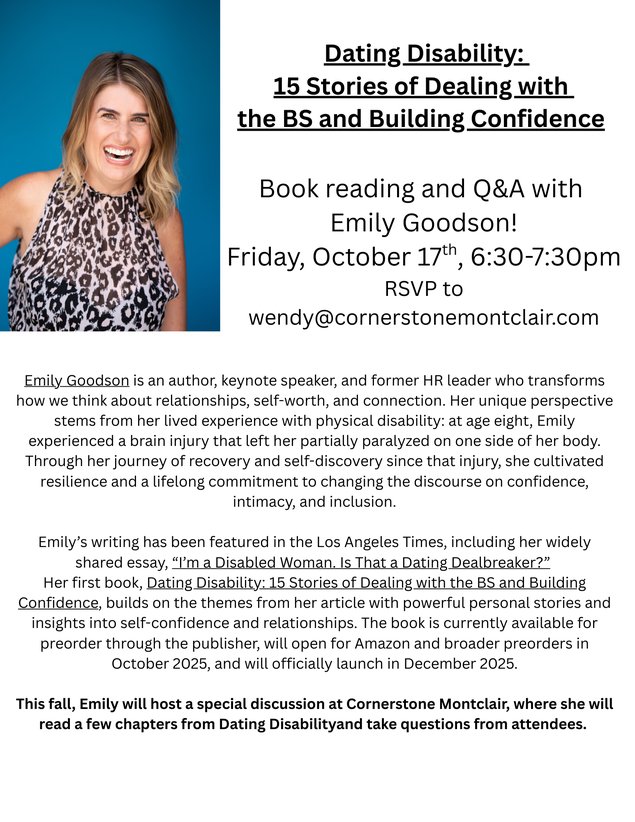 I also want to share two other updates. On October 17, I’ll be doing a book reading at Cornerstone Montclair in Montclair, New Jersey, from 6:30–7:30 PM. If you’d like to attend, please email Wendy Lacey to let us know you are coming (see below image for her e-mail address). In addition, I was thrilled to partner with SoulCycle to profile my book on their social media—you can watch that feature here.